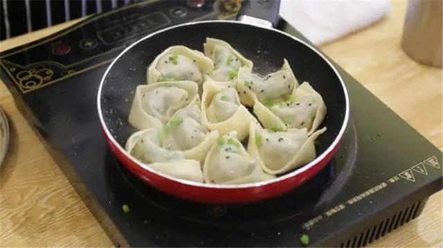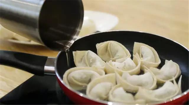 ⑤將餛飩放入平底鍋內(nèi),餛飩與餛飩之間盡量能留少量空隙,這樣煎出來的餛飩才不會黏在一起;